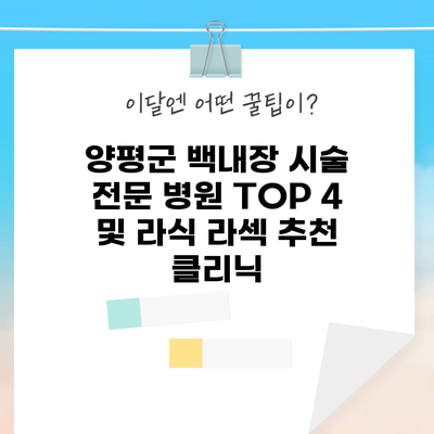 양평군에서 눈 건강을 지키고 싶다면 백내장 시술을 전문으로 하는 병원을 선택하는 것이 중요해요. 요즘 많은 사람들이 백내장 시술이나 라식, 라섹과 같은 눈 수술에 관심을 가지고 있지만, 어떤 병원을 선택해야 할 지 고민이 많을 것입니다. 그래서 오늘은 양평군 백내장 시술 전문 병원 TOP 4를 소개해드릴게요. 이 병원들은 각각의 전문성과 차별화된 서비스를 제공하여 환자들의 신뢰를 얻고 있습니다. … Read more