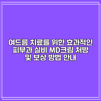여드름 치료를 위한 효과적인 피부과 실비 MD크림 처방 및 보상 방법 안내