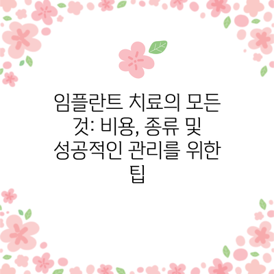 임플란트 치료의 모든 것: 비용, 종류 및 성공적인 관리를 위한 팁 임플란트는 현대 치과 치료에서 중요한 위치를 차지하고 있습니다. 치아를 잃은 이후 다시 자연 치아와 유사하게 기능하게 반영해 주는 이 치료법에 대해 알아봅시다. 이번 글에서는 임플란트의 정의, 절차, 비용, 종류 및 그 관리 방법에 대해 자세히 설명할게요. ✅ 임플란트 치료에 대한 모든 궁금증을 해결해 보세요. … Read more