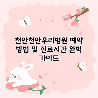 천안천안우리병원 예약 방법 및 진료시간 완벽 가이드